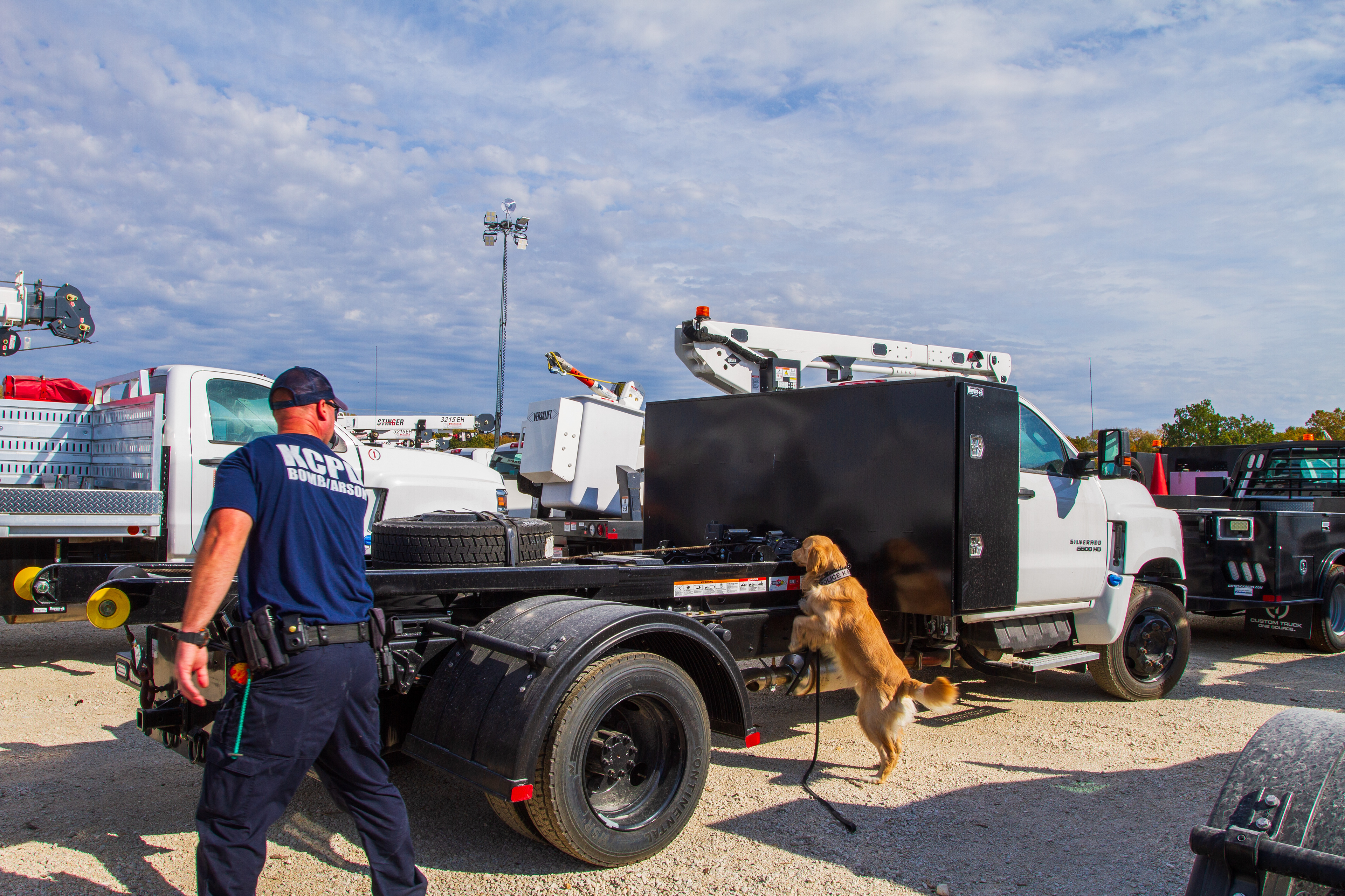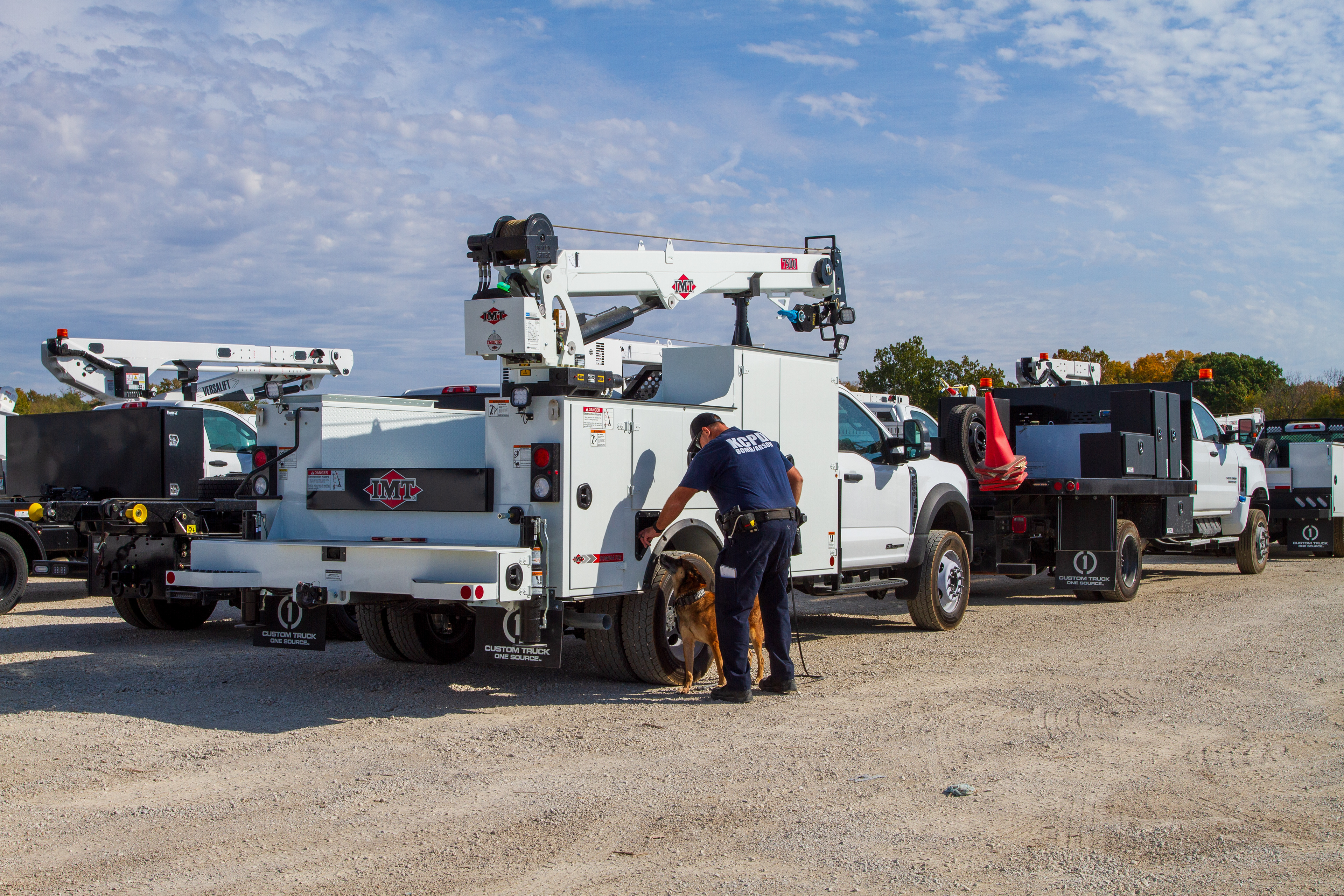 Custom Truck's Kansas City Headquarters has partnered with the Kansas City Missouri Police Department and regional bomb dog units. These amazing K9s keep our community safe by detecting potential explosive devices at big events like the NFL Draft. Custom Truck One Source has provided their campus and large vehicles as a recurring resource for the K9's training and recertifications.
